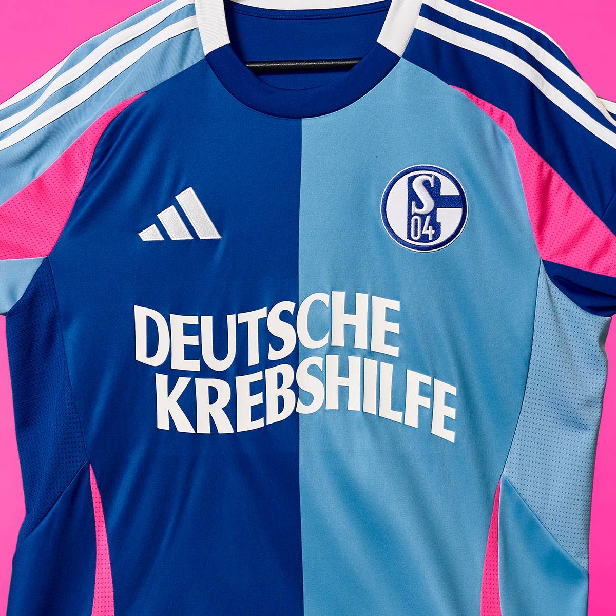 Anlässlich des 50-jährigen Jubiläums der Deutschen Krebshilfe läuft der S04 heute in Sondertrikots auf. Wie schon Ende der 70er Jahre ziert der Schriftzug "Deutsche Krebshilfe" die Schalker Brust. Das Trikot ist ansonsten in den Farben designt, die für die häufigsten Krebserkrankungen in Deutschland stehen: Pink für Brustkrebs, Hellblau für Prostatakrebs, Blau für Darmkrebs und Weiß für Lungenkrebs. Auch Fans können das Trikot in limitierter Auflage online kaufen. Ein Teil der Erlöse geht an die Deutsche Krebshilfe.