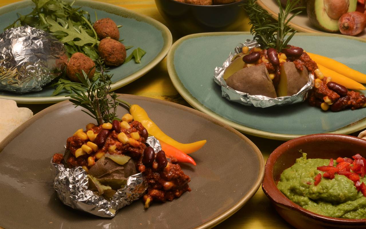 90er Jahre: Chili con Carne mit gefüllter Ofenkartoffel Guacamole und Nachos