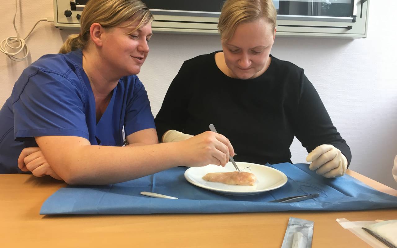 Auch heute waren wir wieder im Marienhospital. Unsere Reporterinnen haben sich mal mit dem Thema Ausbildung beschäftigt, also unter anderem mit Studenten, die sich im praktischen Jahr befinden. Und sie durften heute auch selber üben. Zum Beispiel, wie man im OP mit Nadel und Faden umgeht. Keine Sorge, der Patient war nur ein Stück Hähnchenbrust. Aber es gibt natürlich im Marienhospital auch Krankenschwestern, die sich dort ausbilden lassen. Eine von ihnen ist Melanie Knüfer. Sie ist in ihrem ersten Ausbildungsjahr. Das ist nicht ihr erster Job. Sie hat sich nämlich mit Ende 30 nochmal neu erfunden.
