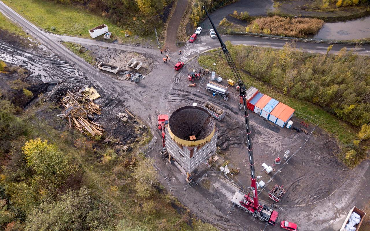 Um das geplante Windrad auf der Gladbecker Mottbruchhalde läuft zwar immer noch ein Rechtsstreit - trotzdem gehen die Arbeiten auf der Halde schon gut voran: In den kommenden Tagen startet der Energiekonzern Steag mit den Hochbauarbeiten. Dafür werden mehrere sperrige Bauteile angeliefert und mit einem Spezialkran aufgestellt. Um die Haldenbesucher nicht zu gefährden, wird der Baustellenbereich großräumig abgesperrt. Außerdem müssen Anwohner mit mehr Verkehr rechnen.