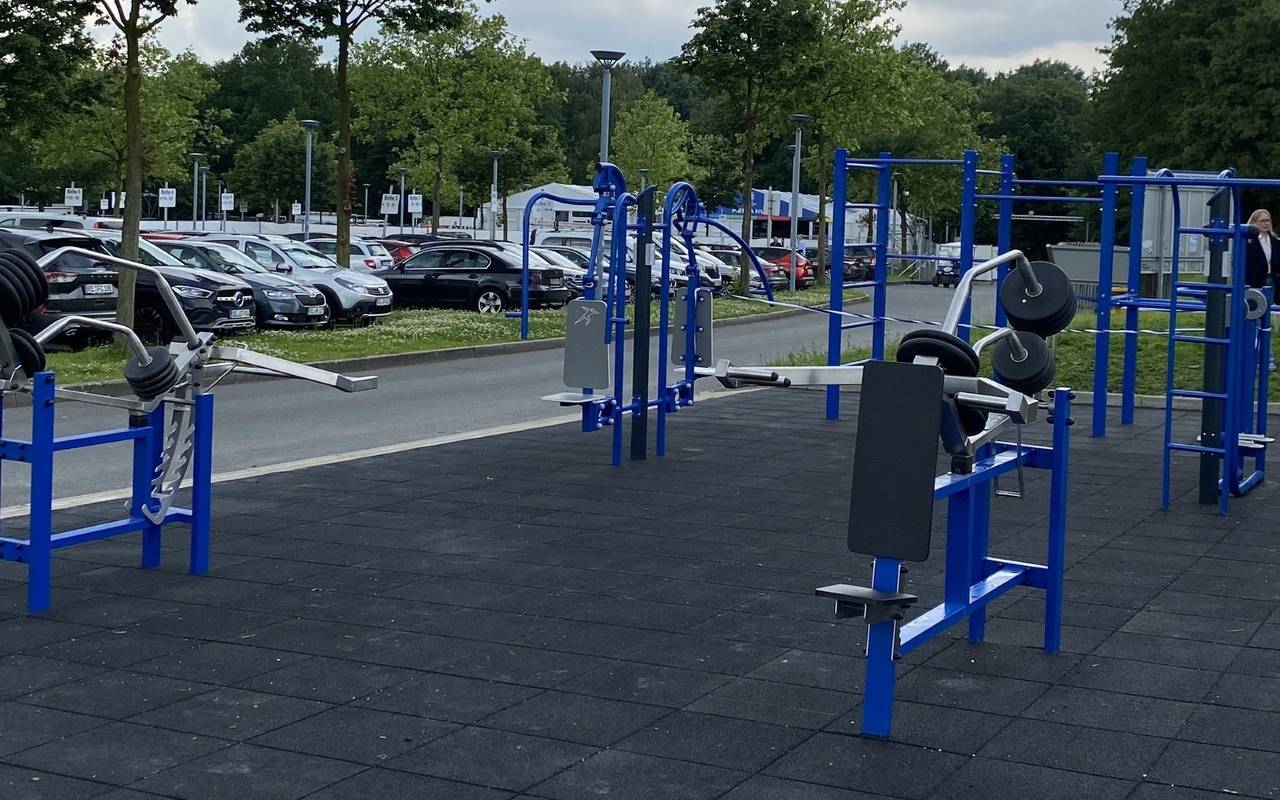 An fünf Stationen rund um die Arena könnt ihr an verschiedenen Sportgeräten unter freiem Himmel trainieren. Christina Rühl-Hamers vom FC Schalke 04 freut sich besonders über den Standort direkt an der Arena.