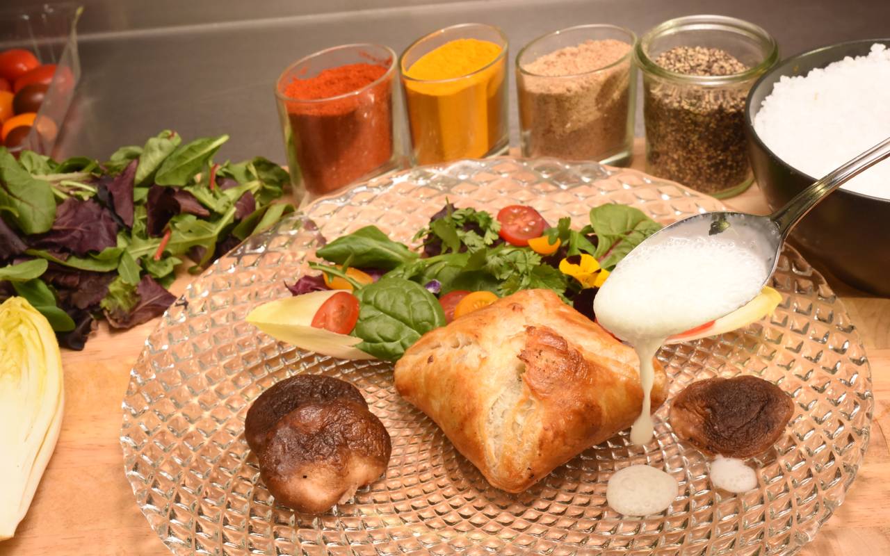 Mit dem Frühling kommt auch der Appetit auf frische, leichte Salate wieder, sagt Stefan Schau. Natürlich mit frischen Zutaten der Saison. Daraus machen wir zum Beispiel Frühlingssalat mit einem Hackfleisch Pilz Tarte. Dieses Gericht ist so leicht, das geht auch im Hochsommer mit einem kühlen Glas Rosé ganz ausgezeichnet. Die Vinaigrette bringt mit Sojasauce und Limette eine asiatische Note in den Salat der dem Blätterteig an die sonnig, leichte Seite führt. So entsteht ein echter kalt, warmer Aromen Salat. Natürlich gibt es endlose Möglichkeiten der Variation, so zum Beispiel mit Feta kommt der Blätterteig vegetarisch daher.