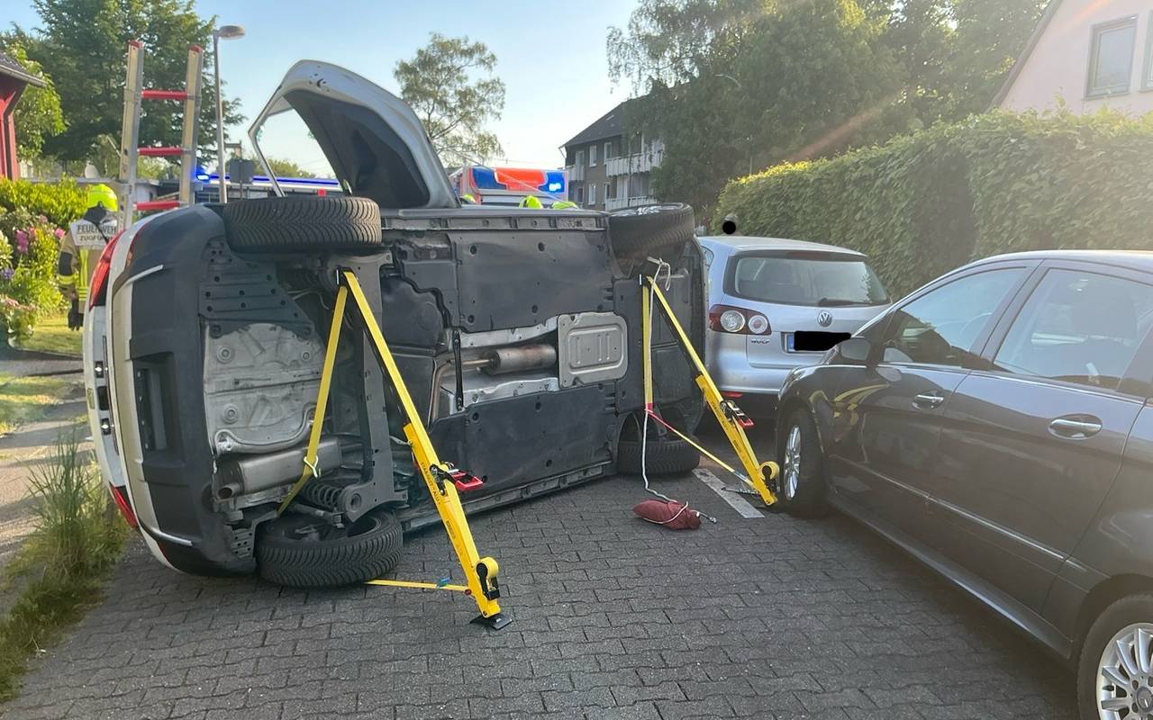 Bottrop: Auto auf der Seite - Fahrerin eingeschlossen