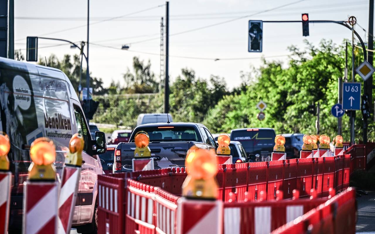 Auf der Essener Straße kurz hinter der A42-Ausfahrt ist eine Flüssigkeit ausgelaufen, durch die es auf der Fahrbahn rutschig werden kann. Deshalb ist eine Spur gesperrt.