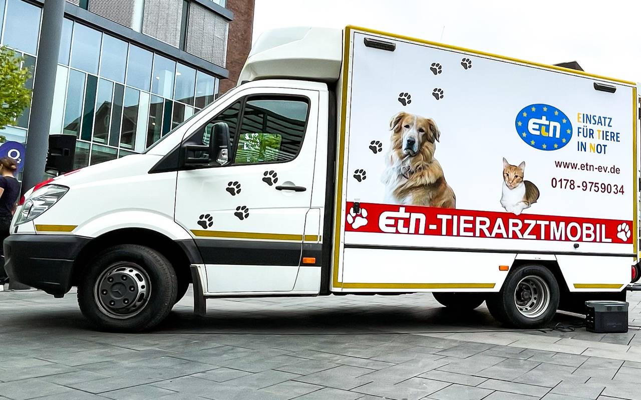 Das Tierarztmobil ist eine Aktion des Vereins "Einsatz für Tiere in Not". Das Fahrzeug steht heute von 9 bis 15 Uhr auf dem Berliner Platz. Dort können Tiere dann beispielsweise vorsorglich untersucht oder geimpft werden. Außerdem sind auch kleinere Operationen wie Zahnsteinentfernung und Kastration möglich. Allerdings sollte dafür vorher telefonisch ein Termin vereinbart werden. Mit dem Tierarztmobil sollen bedürftige Senioren ab 60 Jahren unterstützt und der Besuch beim Tierarzt unkomplizierter werden. Die nächsten drei Wochen wird das neue Projekt auf dem Berliner Platz jeden Donnerstag getestet. Ab Oktober soll das Tierarztmobil auch am Boyer Markt zum Einsatz kommen.