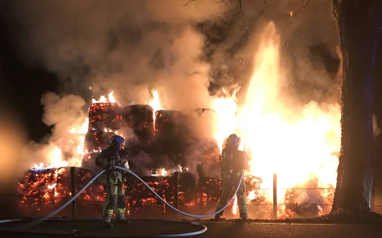 In Feldhausen brannten 30 Strohballen in voller Ausdehnung. Aber auch das Löschwasser entwickelte sich zu einem kleinen Problem.