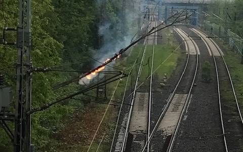 Für die Löscharbeiten musste die Oberleitung mit 15.000 Volt abgeschaltet werden. Mehrere Stunden lang konnten keine Züge fahren.