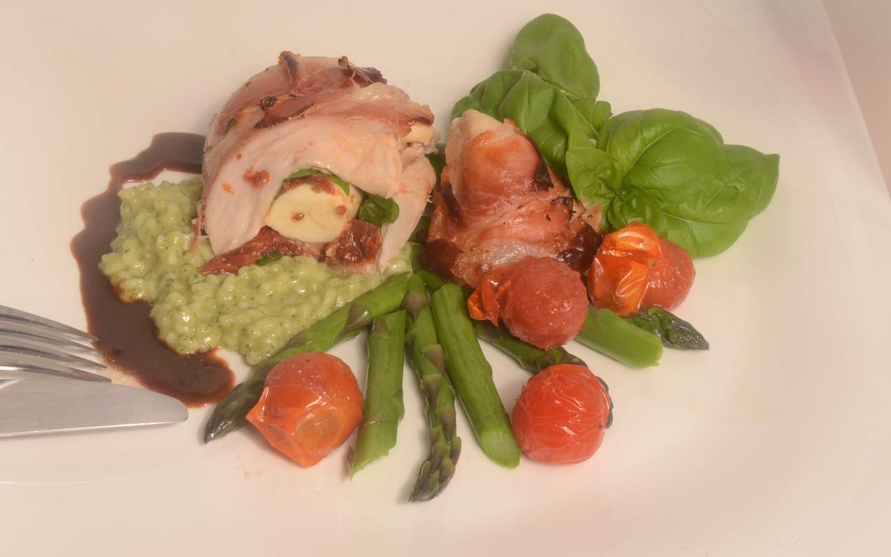 Brunnenkresse Risotto mit gefüllter Poulardebrust