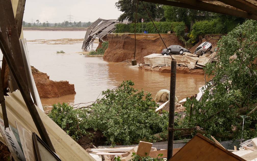 Das Ausmaß der Schäden wird allmählich deutlicher. Im besonders schwer getroffenen Erftstadt-Blessem hat ein gewaltiger Erdrutsch Gebäude, Straßen, auch einen Teil der Autobahn 1 weggespült, mehrere Menschen sind ums Leben gekommen.