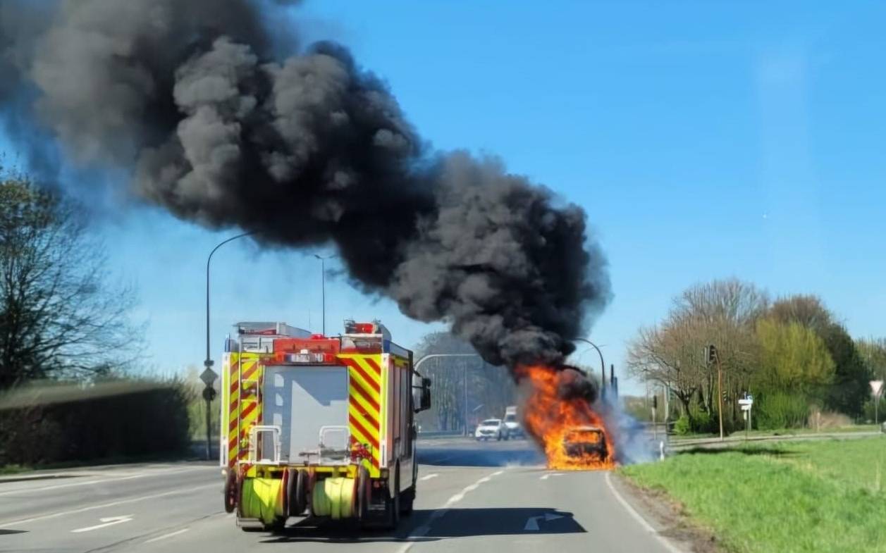 Ein brennendes Auto an der Ulfkotter Straße hat gestern Nachmittag für eine weithin sichtbare Rauchsäule in Gelsenkirchen-Scholven gesorgt. Laut Feuerwehr konnte der Fahrer des Wagens gerade noch sein Kind aus dem Kindersitz retten, bevor das Auto komplett in Flammen stand. Beim Löschen bekamen die Einsatzkräfte Unterstützung von der Werksfeuerwehr von BP - das brennende Auto stand ganz in der Nähe der Einfahrt zum Scholvener Werk. Wegen der Löscharbeiten war die Ulfkotter Straße im Gelsenkirchener Norden gestern Nachmittag gesperrt. Warum das Auto in Brand geraten ist, ist noch unklar.