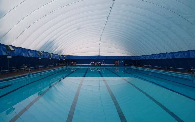 Die Täter haben laut Polizei die Plane der Traglufthalle aufgeschnitten, um sich Zugang zum Schwimmmeisterbüro zu verschaffen.