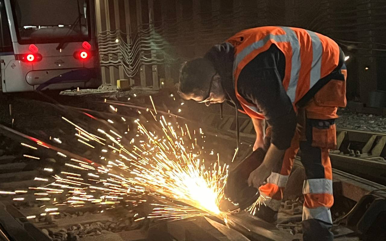 Heute nehmen sich die Gleisbauer den meistbefahrenen Tunnel in Gelsenkirchen vor: zwischen dem Hauptbahnhof und der Rheinelbestraße fahren sowohl Bahnen der Linie 301 als auch der 302 im Minutentakt vorbei. An Schalke-Heimspieltagen reiht sich in diesem Trakt Zug an Zug. Die Arbeit der Weichen-Kontrolleure der Bogestra ist nicht unbedingt laut - eher filigran. Die Arbeiter schaben und schleifen zum Beispiel Ablagerungen ab, kontrollieren Abstände und reparieren - wenn nötig - direkt vor Ort.