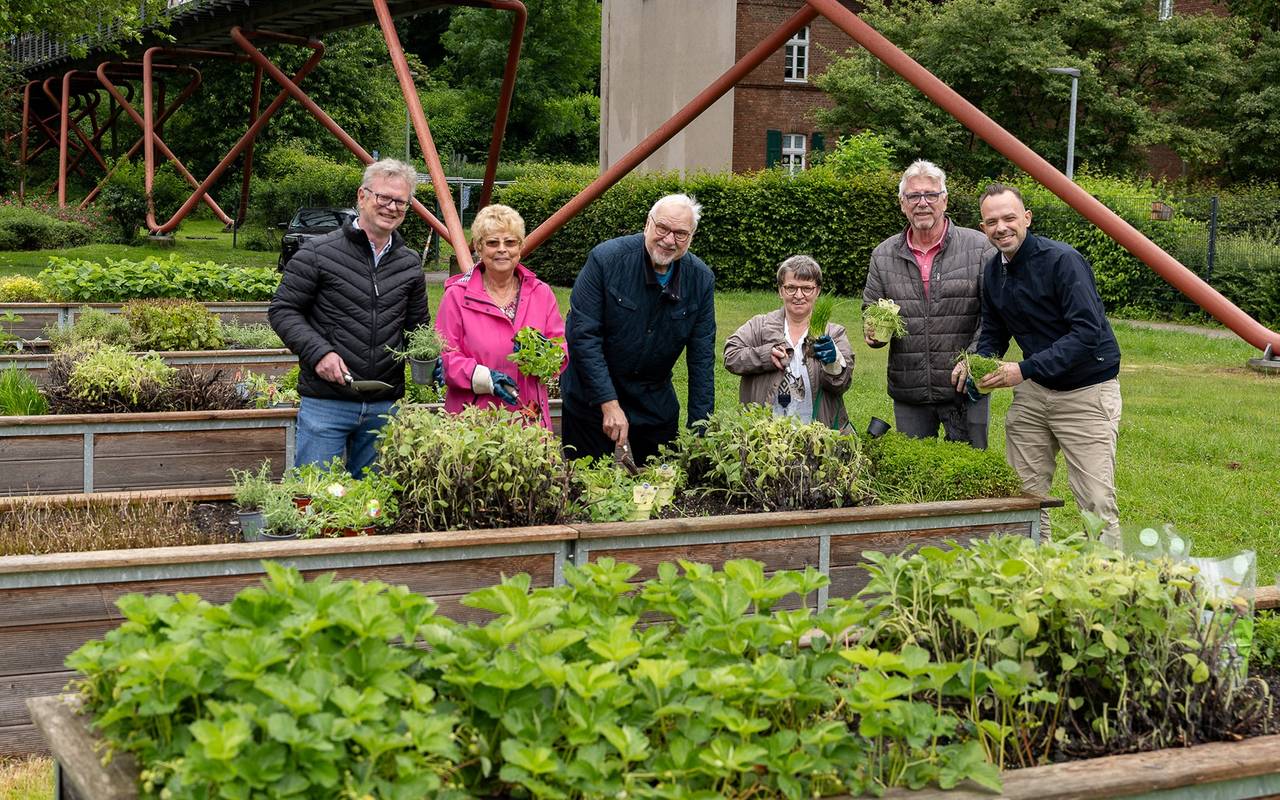 Der Eingang zum Gelsenkirchener Nordsternpark an der Blumenstraße ist wieder grüner geworden. Im Rahmen des "Urban Gardening"-Projekt ist in den Hochbeeten jetzt wieder eine bunte Mischung aus Gemüse und Kräutern gepflanzt worden.