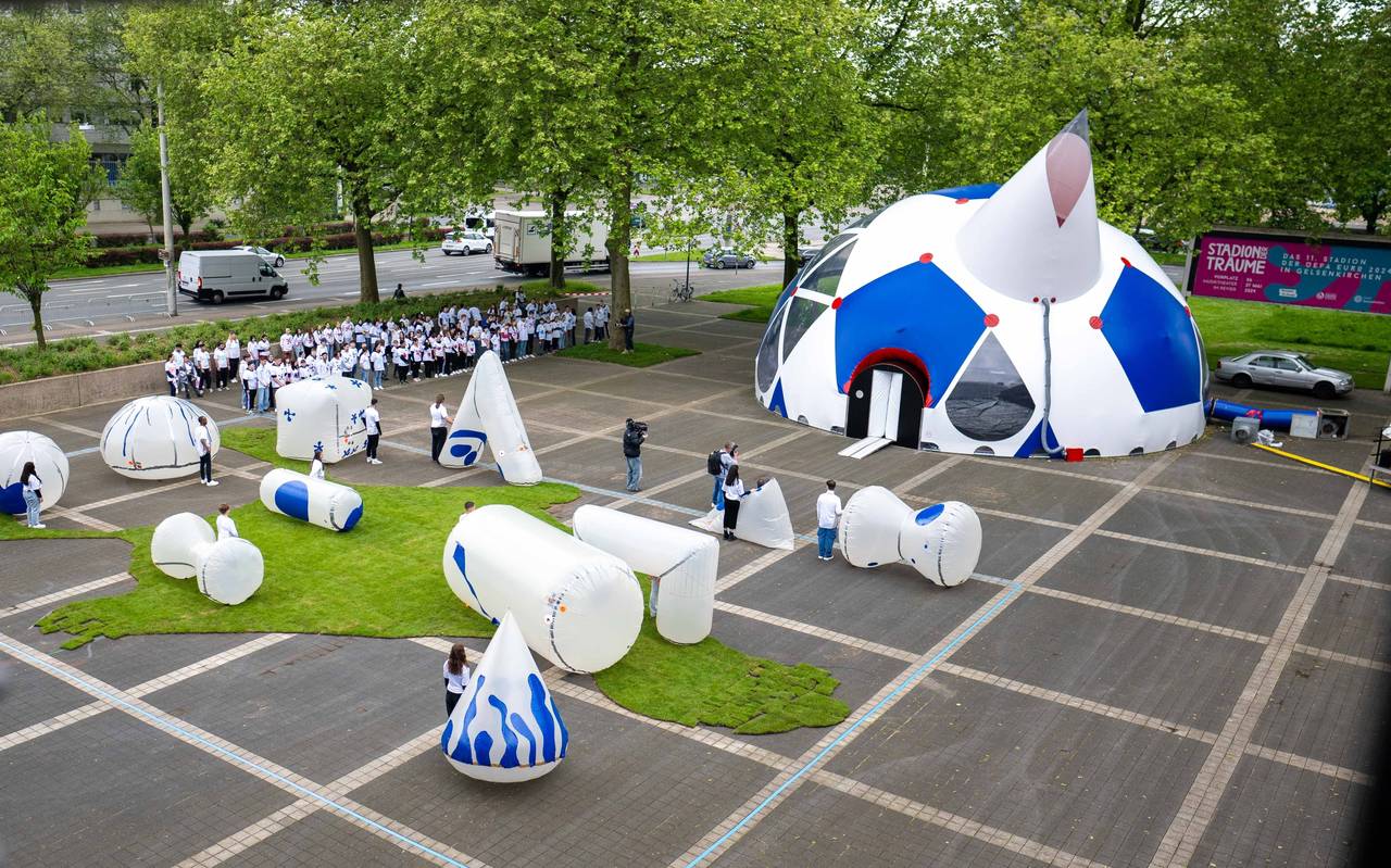 Wenige Wochen vor Start der Fußball-EM hat jetzt vor dem Gelsenkirchener Musiktheater das „Stadion der Träume“ eröffnet. Es ist das offizielle Kunst- und Kulturprojekt der Stadt zur EURO 2024. In dem aufgeblasenen Stadion sollen 120 Kinder und Jugendliche bei einem Turnier mit Hilfe von Musik, Tanz, Video und Literatur ihre Träume erarbeiten und in Szene setzen. Für weitere 600 Kinder gibt es Konzerte, Lesungen und kreative Workshops. Zum Start gab es u.a. gestern Abend (6.5.) die Projektion „Glühende Traumwelten“. Sie leuchtet jetzt jeden Abend nach Einbruch der Dunkelheit am „Stadion der Träume“. Das Kunst- und Kulturprojekt zur Fußball-EM am Gelsenkirchener Musiktheater geht bis zum 27. Mai.