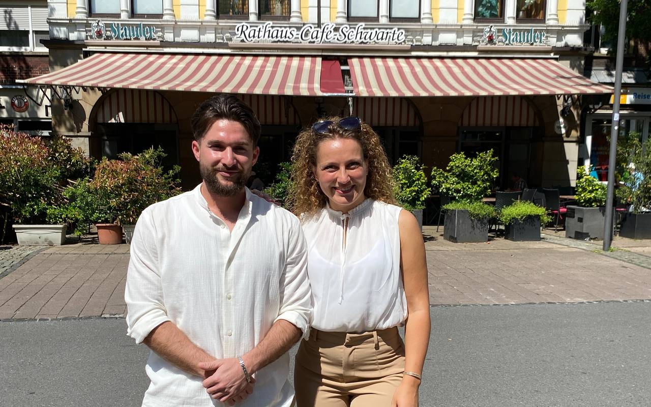Für beide ist es der Schritt in die Selbstständigkeit. Pedro Daniel Benitez Fernandez ist in Spanien geboren. Sein Vater hatte mehrere Restaurants, wodurch er schon von klein auf mit der Gastronomie in Berührung kam. Viktoria Schneider ist gebürtige Gladbeckerin und freut sich auf die große Aufgabe am Willy-Brandt-Platz: