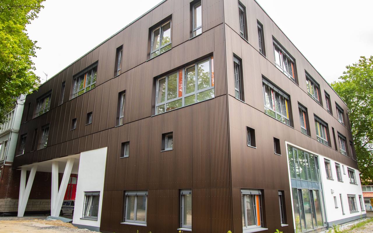 Der rund 2.000 Quadratmeter große L-förmige Anbau ist mit dem denkmalgeschützten Altbau verbunden - außerdem ist er barrierefrei. Es gibt unter anderem sechs neue Klassenräume, große Flure und einen Aufenthaltsbereich für die Schüler. Zusätzlich wurden die Dächer mit Photovoltaik-Anlagen und einer Dachbegrünung ausgestattet. Der Schulhof hat ab sofort auch eine Überdachung. Einige Arbeiten stehen noch an - Malerarbeiten werden zum Beispiel nach dem Schulstart angegangen. Insgesamt wurden rund 5,8 Millionen Euro in den Neubau der Mosaikschule in Butendorf investiert.