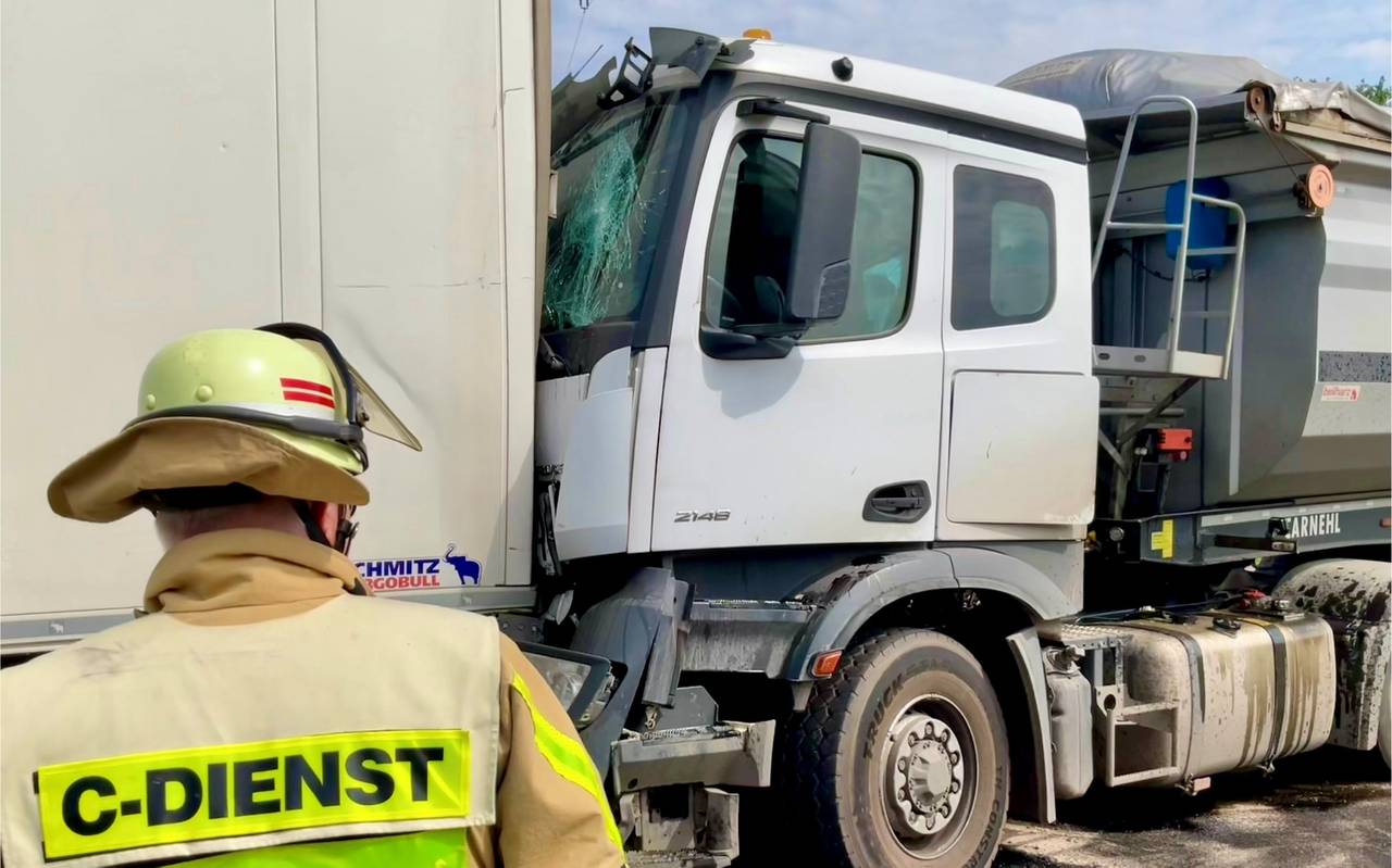 - Auffahrunfall mit zwei Lastwagen