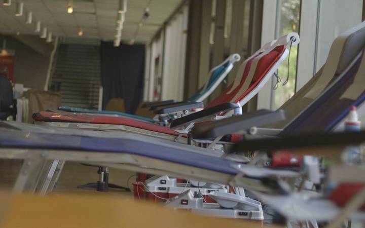 Bis einschließlich Donnerstag wird die Mathias-Jakobs-Stadthalle zum Spenderzentrum umgebaut - mit den nötigen Sicherheitsvorkehrungen. Bei allen Spendewilligen wird vor der Anmeldung die Körpertemperatur gemessen. Bei der Spende selbst sollen Plexiglaswände, Masken und Gesichtsschilde die Spender und DRK-Mitarbeiter vor einer möglichen Ansteckung schützen. Die Blutspende in der Gladbecker Stadthalle ist von heute bis Donnerstag immer zwischen 14 und 19 Uhr möglich. Wegen der Corona-Krise brechen im Moment einige Spender weg - deshalb braucht das DRK dringend neue Blutkonserven.