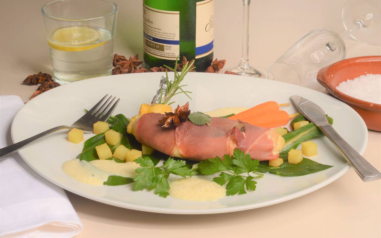 Hähnchenbrust auf Mangold mit Zitronen-Sternanis-Soße und Wermut
