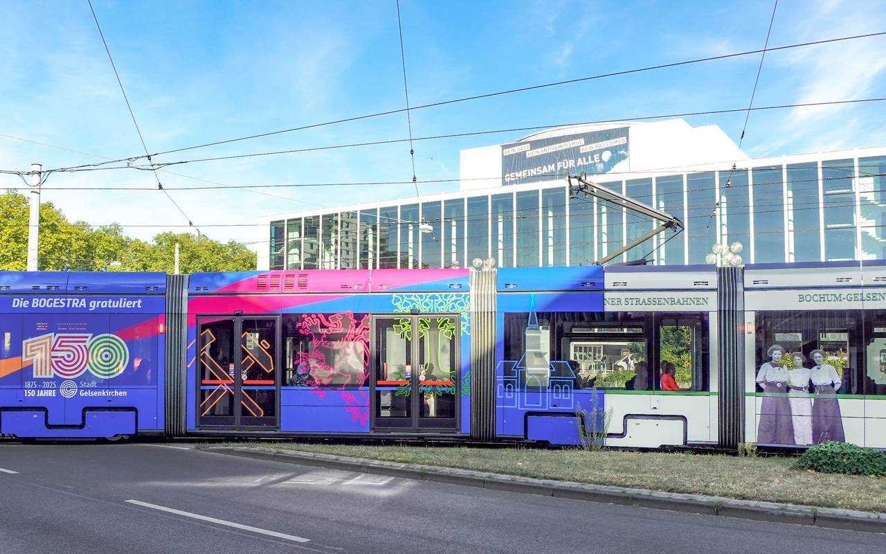 Die BOGESTRA feiert mit einer speziell gestalteten Jubiläumsbahn und historischen Straßenbahnfahrten das 150-jährige Stadtjubiläum Gelsenkirchens.