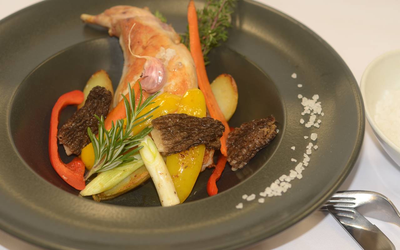 Kaninchenkeulen im Römertopf geschmort mit Morcheln