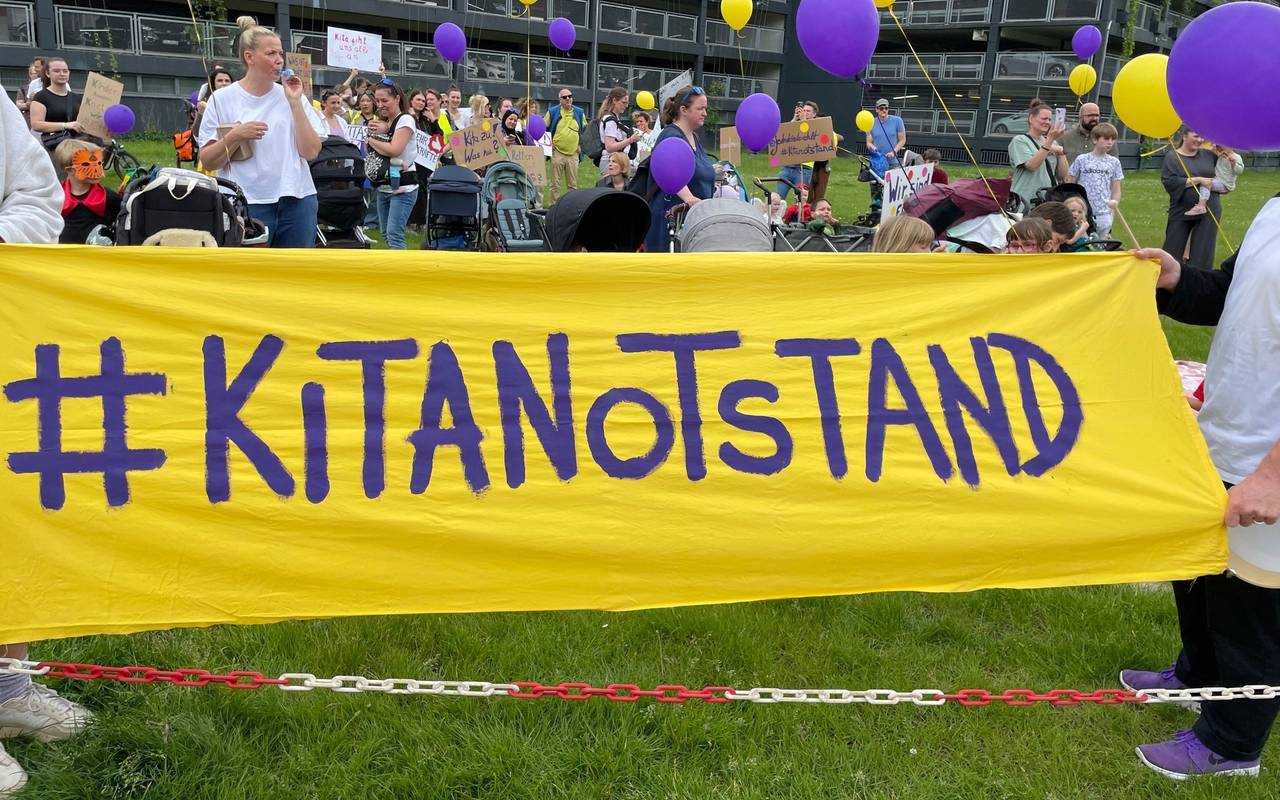 Kitaträger, Erzieherinnen und Erzieher, sowie viele Eltern treffen sich unter anderem in Düsseldorf vor dem Landtag. Sie wollen sich Gehör verschaffen.