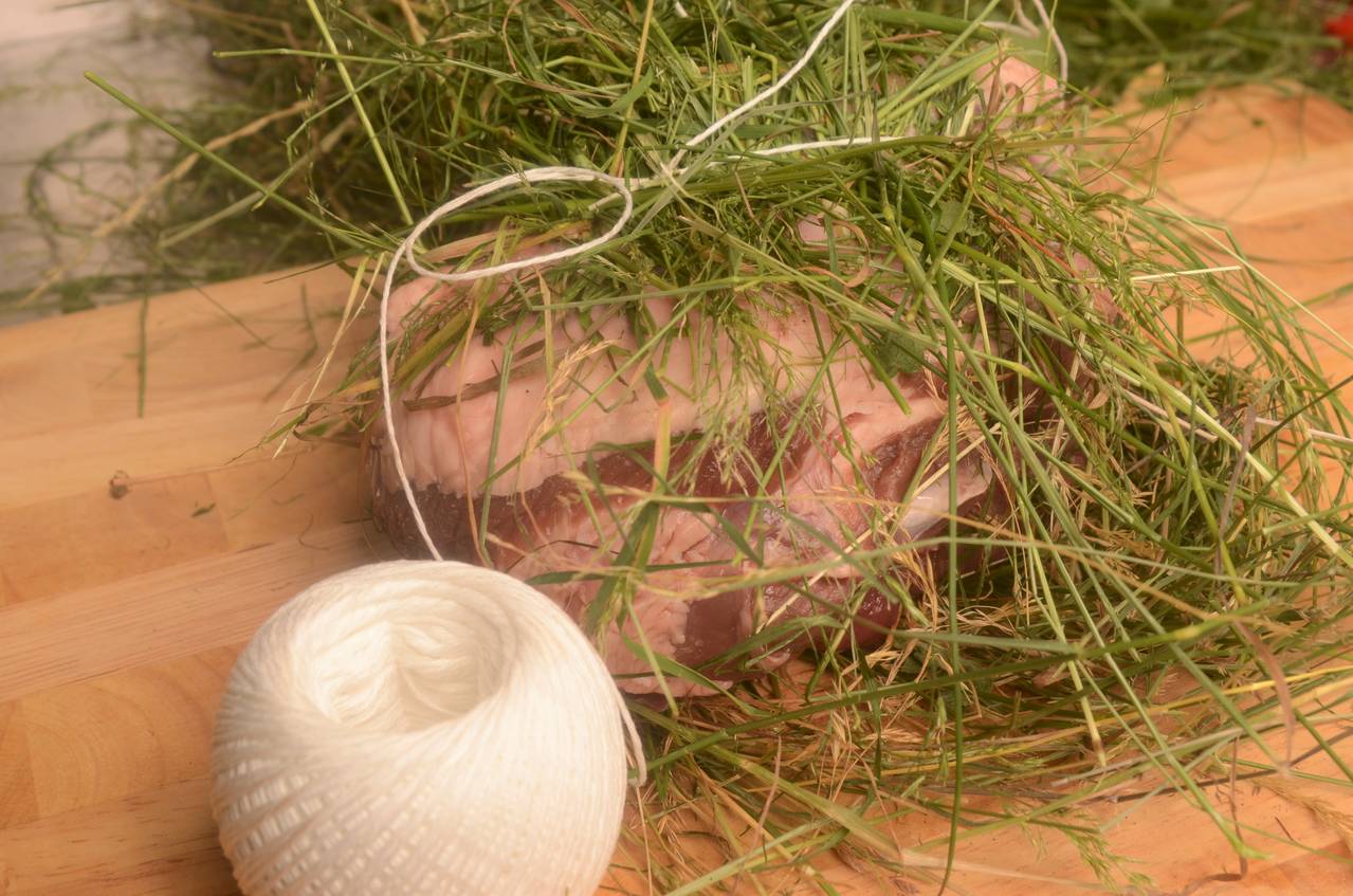 Wir klauen den Pferden für das heutige Rezept das Heu und garen darin eine Lammkeule. Die bekommt dadurch ein besonderes Aroma und das Heu hilft dabei, dass Fleisch schonend zu garen.