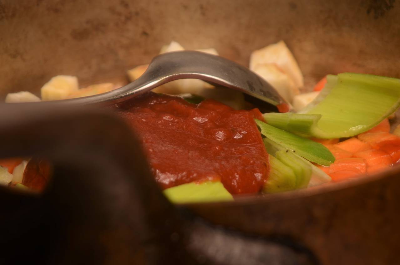 Anschließend das Röstgemüse und die Zwiebeln schälen und vierteln. Das dann um das Fleisch verteilen und mit dem entstandenen Saft mischen. Salzen und pfeffern nicht vergessen. Die restlichen Kräuter, den Weißwein und den Fleischfond hinzugeben und die Lammkeule eine Stunde weiterbraten. Zwischendurch die Lammkeule mit dem Fond übergießen. Zum Schluss die Lammkeule vom Heu befreien und für 10 Minuten ruhen lassen.