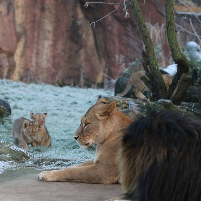 Besucher der Zoom Erlebniswelt können ab heute den Drillings-Nachwuchs bei den Löwen auch im Außengehege bewundern.