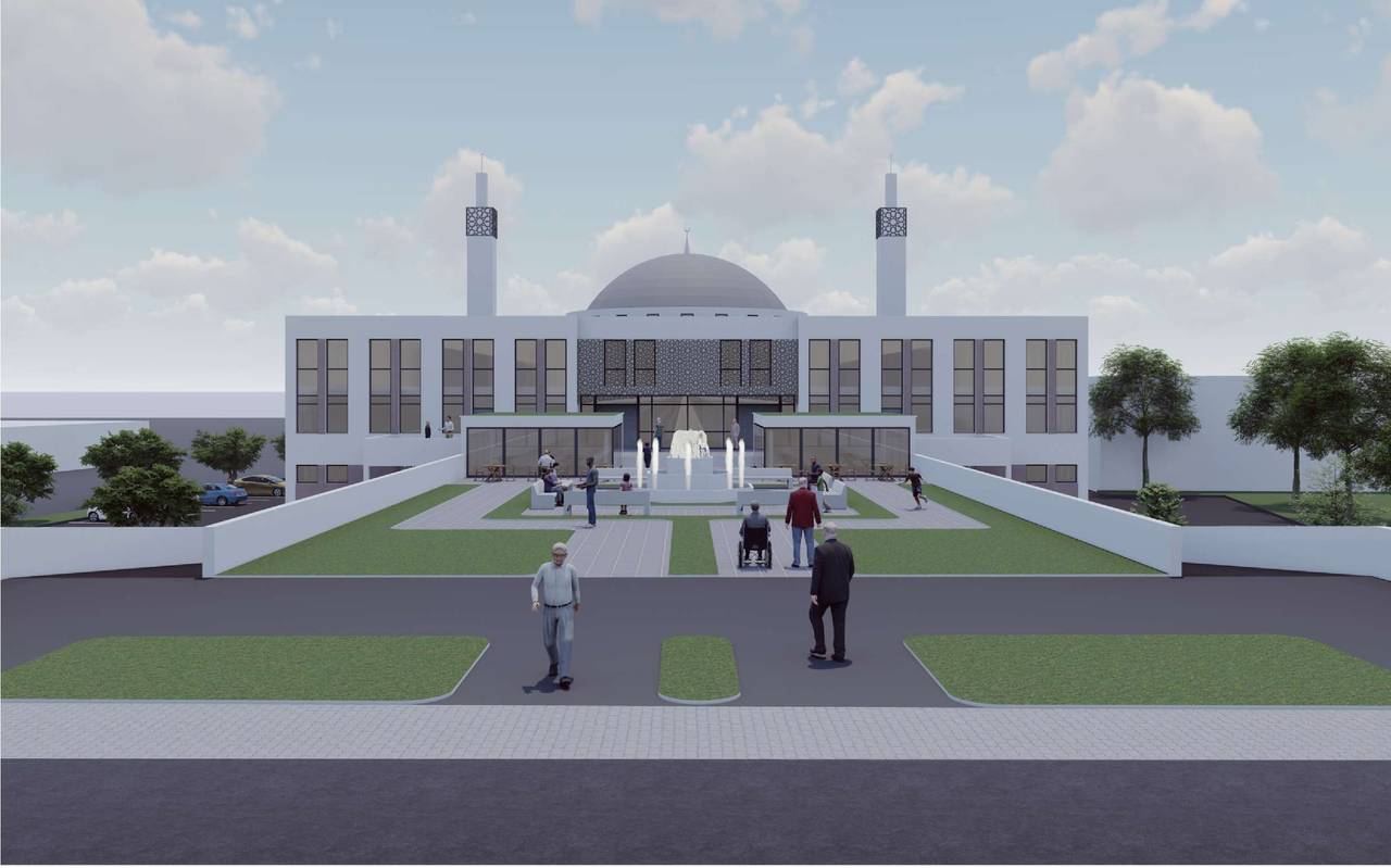 Von der Straße aus soll man durch einen kleinen Park in das tiefer liegende Moscheegebäude kommen. Den großen Veranstaltungssaal und zwei Cafés will die Gemeinde auch der Öffentlichkeit zur Verfügung stellen - man wolle Begegnungsstätte für alle Bürger und Kulturen sein, heißt. Die zwei Minarette werden auch aus der Entfernung zu sehen sein - Gebetsrufe von den Türmen sind aber nicht geplant.