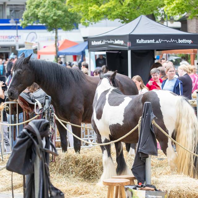 Auch nach zwei Jahren Corona-Pause findet in Bottrop der Pferdemarkt wieder statt. Termin ist der 8. Mai. Reiter und Pferde zeigen auf dem Kirchplatz in der Innenstadt ihr Können. Außerdem ist an dem Tag verkaufsoffener Sonntag.
