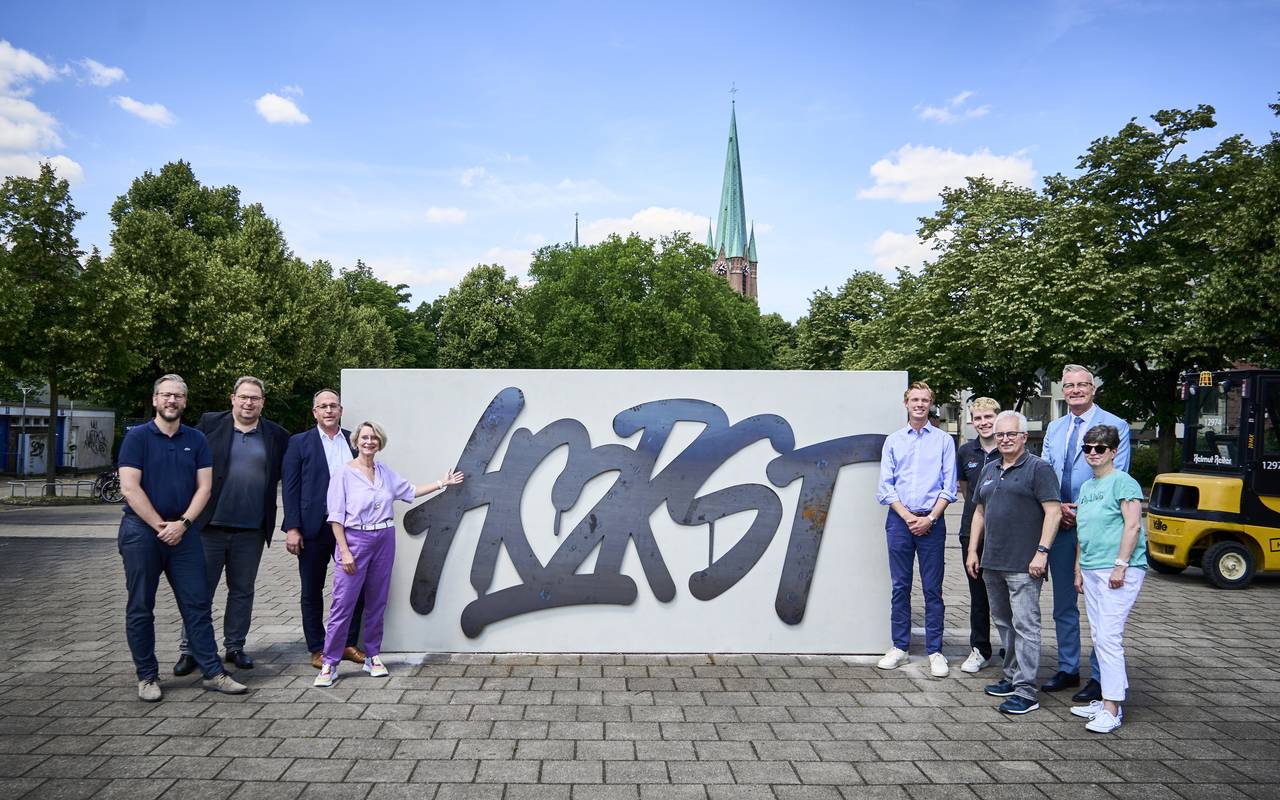 Auf dem Josef-Büscher-Platz in Gelsenkirchen-Horst wurde ein neuer Schriftzug vorgestellt, der künftig als Wahrzeichen und Fotospot dienen soll.