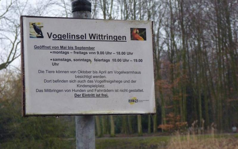 Die Vogelinsel könnt ihr nur noch heute und morgen besuchen - danach wird sie geschlossen. Das hat der Zentrale Betriebshof angekündigt. Mit Beginn der kalten Jahreszeit ziehen die exotischen Vögel in das Vogelhaus. Dort haben sie ein warmes Zuhause und kommen so über die kalten Wintermonate. Im Herbst und Winter könnt ihr die Tiere dann durch die großen Scheiben beobachten. Das Vogelhaus ist direkt neben dem Tiergehege am Abenteuerspielplatz in Wittringen. Es hat dienstags bis sonntags von 9 bis 16 Uhr geöffnet.