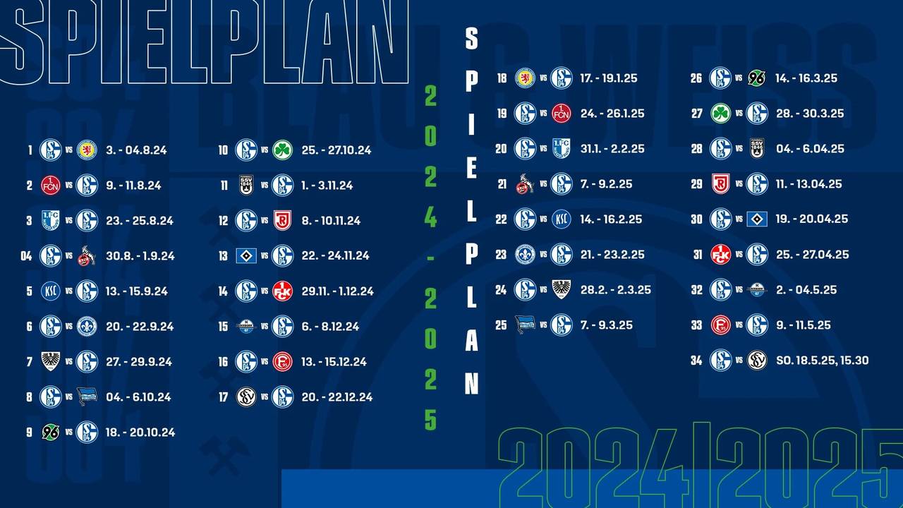 Am Wochenende darauf (9.-11. August) steht schon das Duell bei den Freunden vom 1. FC Nürnberg an. Zum ersten Auswärtsspiel der neuen Saison geht es für Schalke zu den Franken. Das Saisonfinale am 18. Mai 2025 wird ein Heimspiel gegen den SV Elversberg.