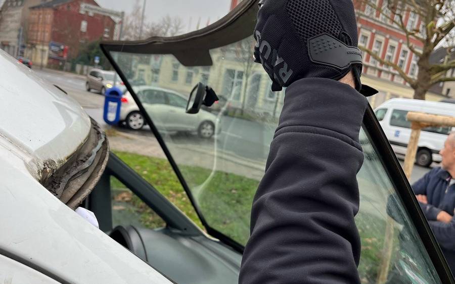 Ein Fiat war in dieser Woche auf der Bismarckstraße unterwegs - unter anderem mit loser Windschutzscheibe, die jederzeit auf die Straße hätte fallen können.