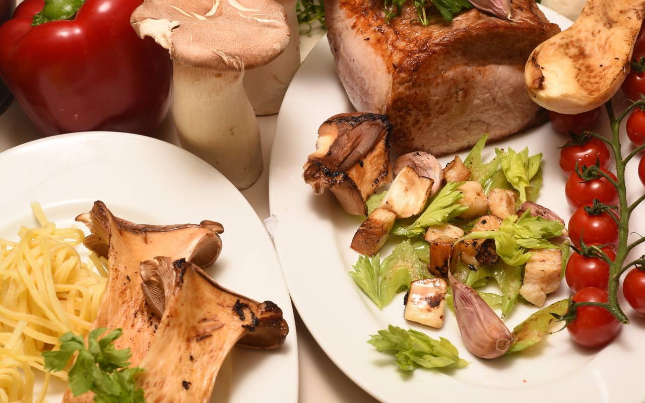 Schweinerücken mit Austernseitlingen, Staudensellerie, Pasta und Rahmsoße