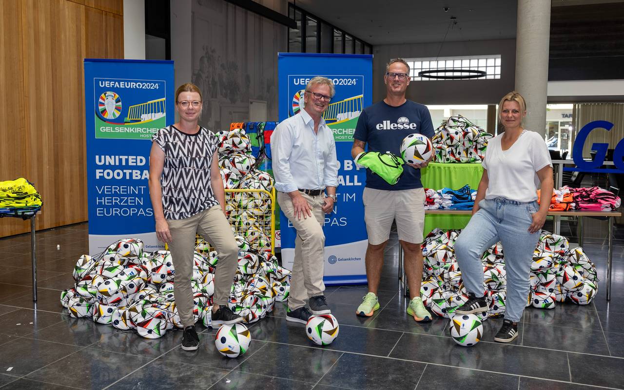 Außerdem wurden acht Bolzboxen an Kinder- und Jugendeinrichtungen in der Stadt übergeben. Die Boxen hatten während der EM in den Fan Zones in Gelsenkirchen gestanden. Die Fußbälle hatte die Stadt vor dem Turnier von Adidas zur Verfügung gestellt bekommen. Jetzt sollen die Vereine davon profitieren.