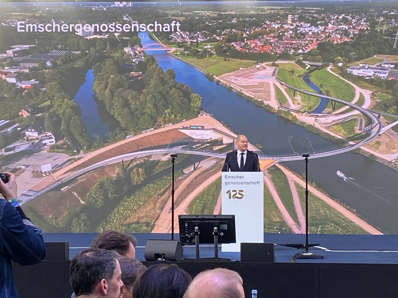 Beim Festakt zum 125. Geburtstag der Emschergenossenschaft hat heute Mittag auch Bundeskanzler Olaf Scholz in der Bochumer Jahrhunderthalle gesprochen: