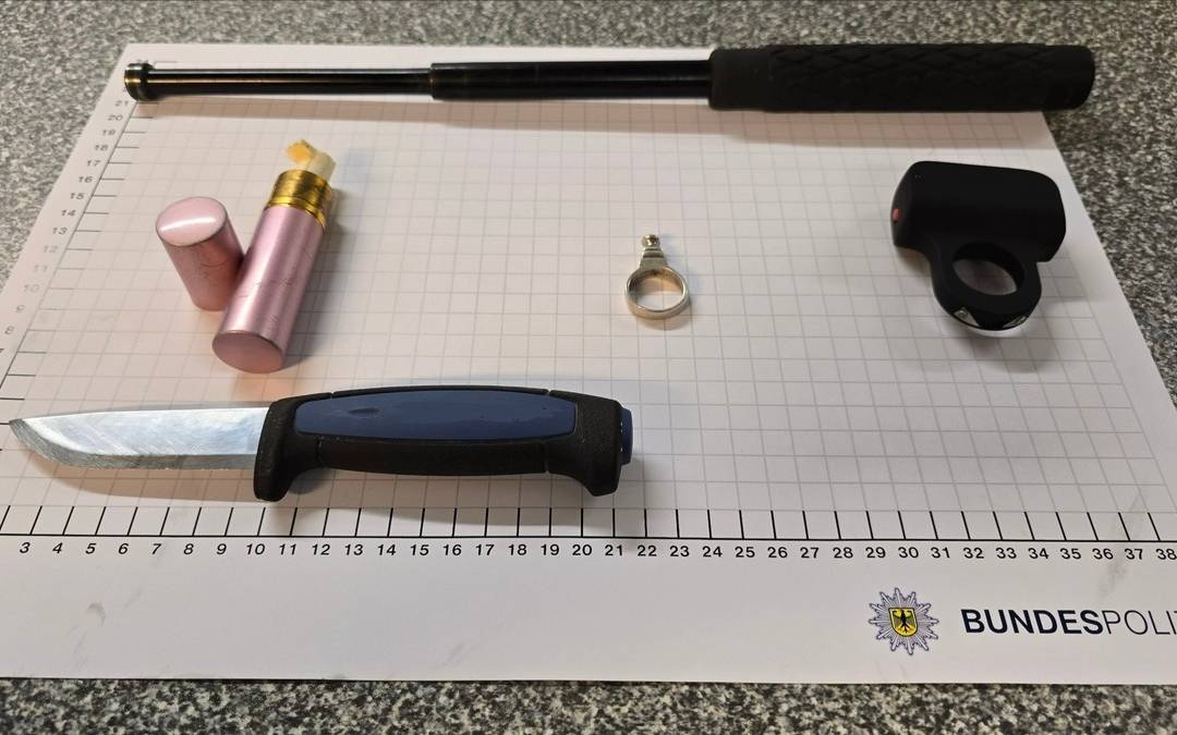 Innerhalb weniger Stunden hat die Bundespolizei bei fünf Reisenden gefährliche und verbotene Gegenstände entdeckt.