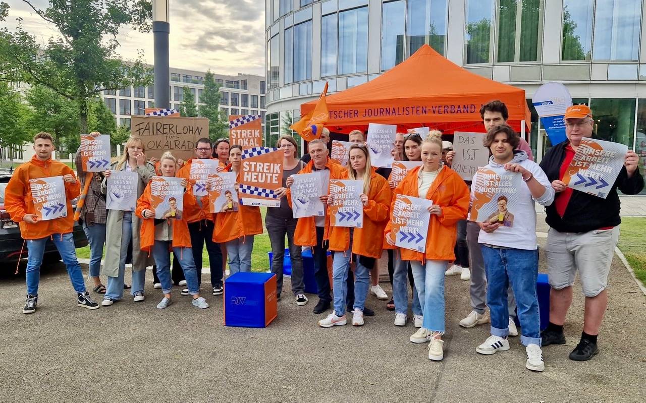 Seit gestern Morgen 6.15 Uhr galt der Streikaufruf des Deutschen Journalisten-Verbands. In unserem Programm, auf radioemscherlippe.de und in den Sozialen Netzwerken gab es deshalb so gut wie keine lokalen Inhalte. Auch die Kollegen von Radio Essen, Radio Bochum und Radio KW haben sich an dem eintägigen Warnstreik beteiligt. Es gab eine Versammlung vor der Zentrale der Funke-Mediengruppe in Essen.