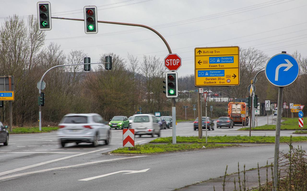 Wichtige Ampel an der B224 in Bottrop ist ausgefallen