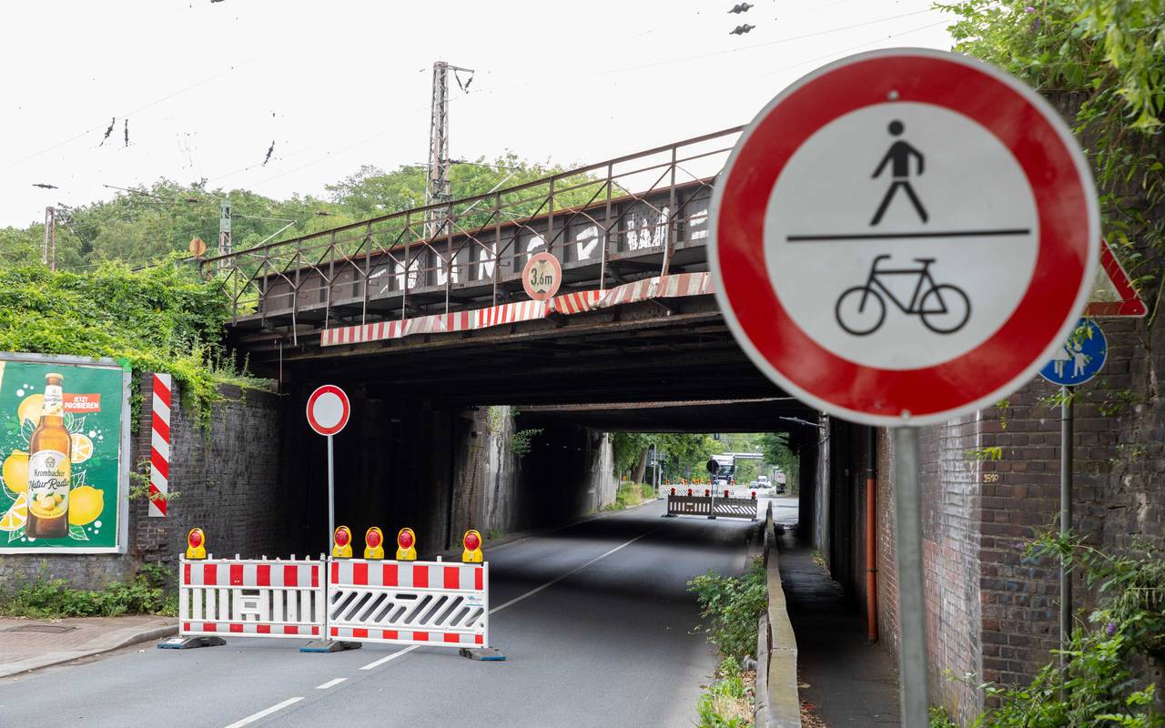 Die Eisenbahnbrücke in Bottrop-Batenbrock ist so marode, dass die Straße darunter im Sommer schon für mehrere Wochen gesperrt werden musste. Damals drohten Betonplatten auf die Fahrbahn zu fallen.